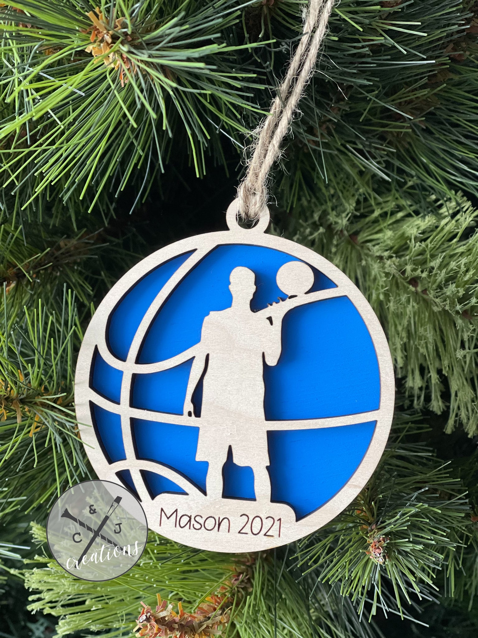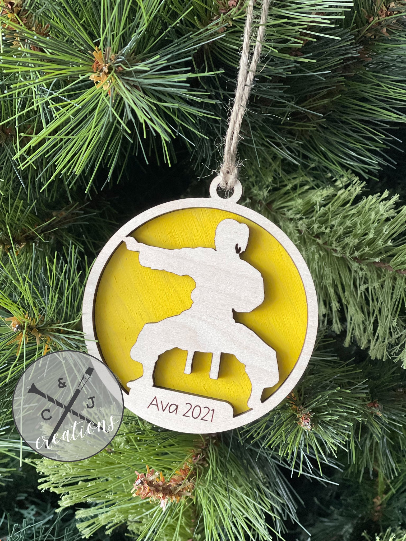 A personalized ornament for your favorite athlete, gymnast or dancer! Each ornament is customized with your choice of background color, name/year, number.