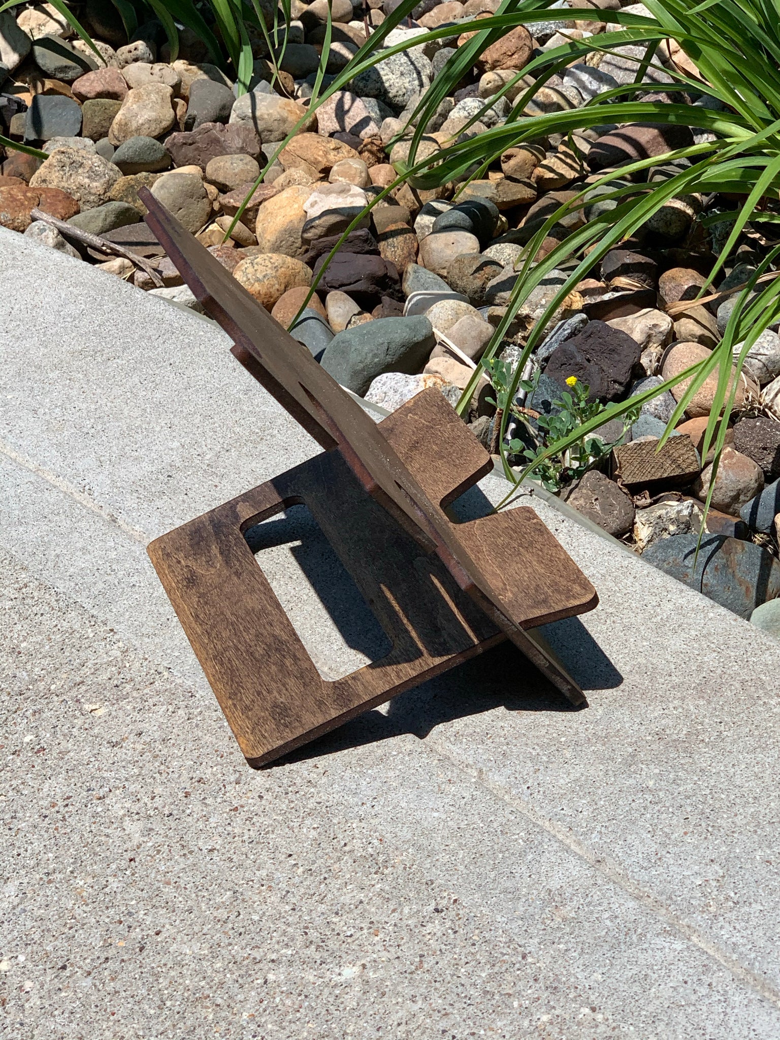 Made from maple plywood, and laser cut out for precision. The stand can be broken down to lie flat for travel.